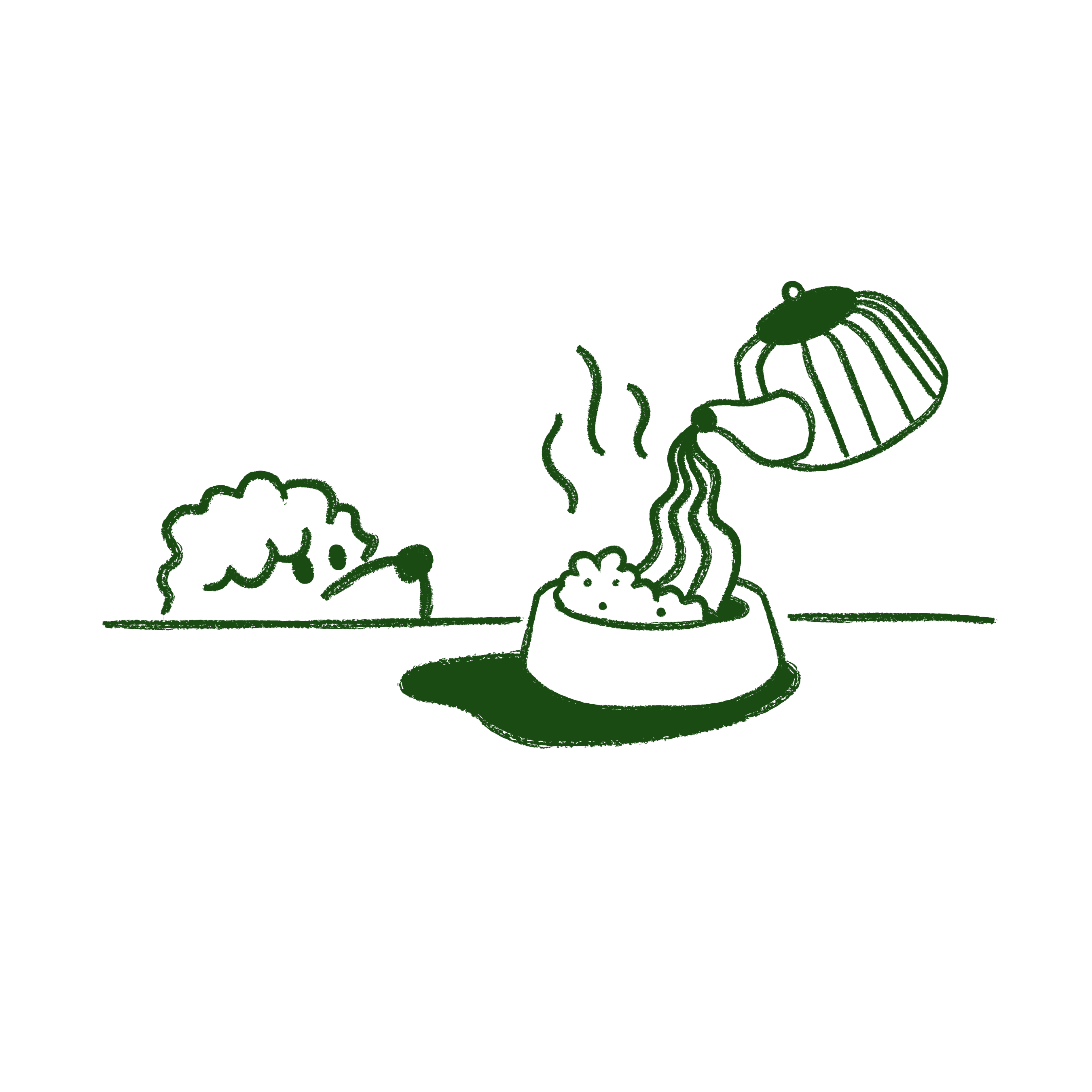 No need to measure here! Just pour the desired amount of dry Big Dog Natural in the bowl and top it off with rather warm water but not boiling! Boiling water would “cook” the food and destroy some very valuable vitamins and enzymes. But the warmer the water, the faster it will reconstitute the food. Don’t add too much to start, you can always add more later. Just barely cover the food with water, stir and let it sit for at least 10 minutes until desired consistency. Stir again and serve.
